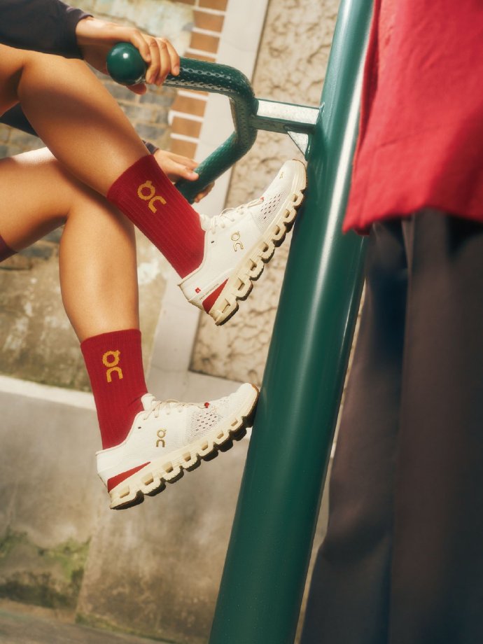 On昂跑蛇年新春限定系列首次加入童鞋、服装,以及帽袜配件,时尚色调与质感设计,搭配同系列单品,打造从头到脚的造型,时尚步入新年,迎接好运。Cloudleap蛇年版儿童款休闲鞋,是On昂跑目前最轻的大童鞋。Cloudleap秉承Cloudtilt、Cloud X 4一致的蛇年新春设计理念,除红色鞋垫、蛇形印花、金色logo外,其红色系带亦寓意好运连连。