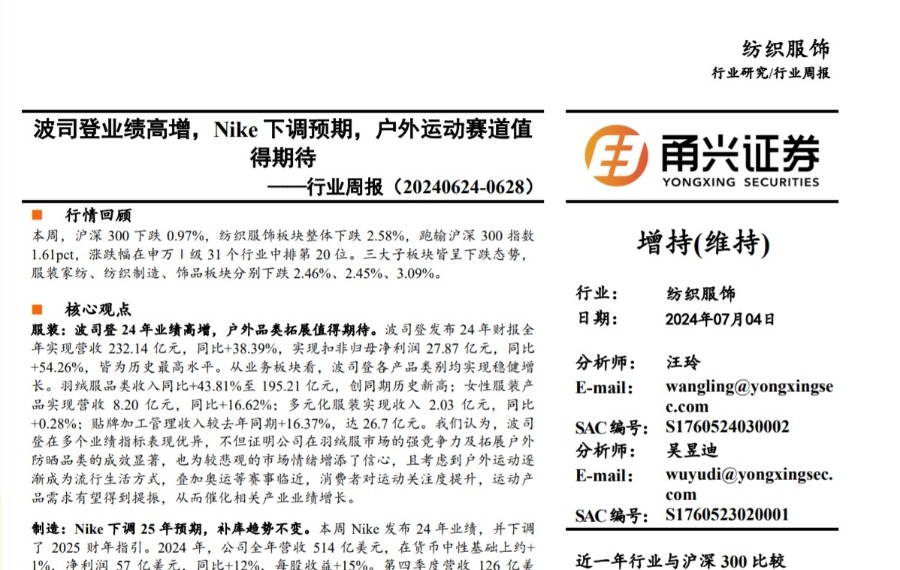 波司登业绩高增,Nike下调预期,户外运动赛道值得期待